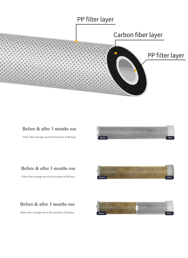 - Хлор, шохойн үлдэгдэл (Цагаан саарал нунтаг) болон бактер гэх мэт хорт бодисуудыг шүүнэ